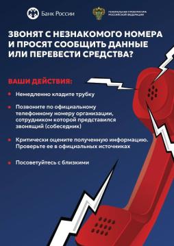 Информационные плакаты о защите от телефонных злоумышленников разработаны Генеральной прокуратурой Российской Федерации совместно с Банком России. Цель плакатов — предупредить людей о популярных схемах обмана и научить их защищаться.