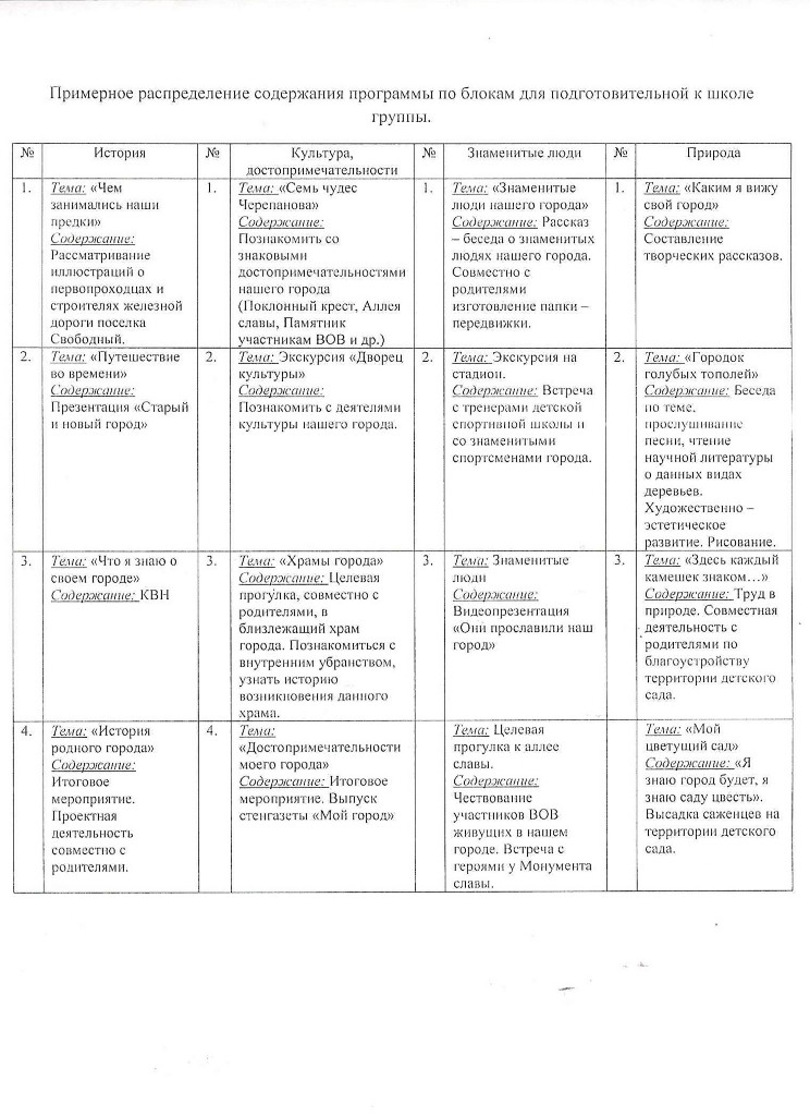 Примерное распределение содержания программы по блокам для детей средней, старшей и подготовительных групп.